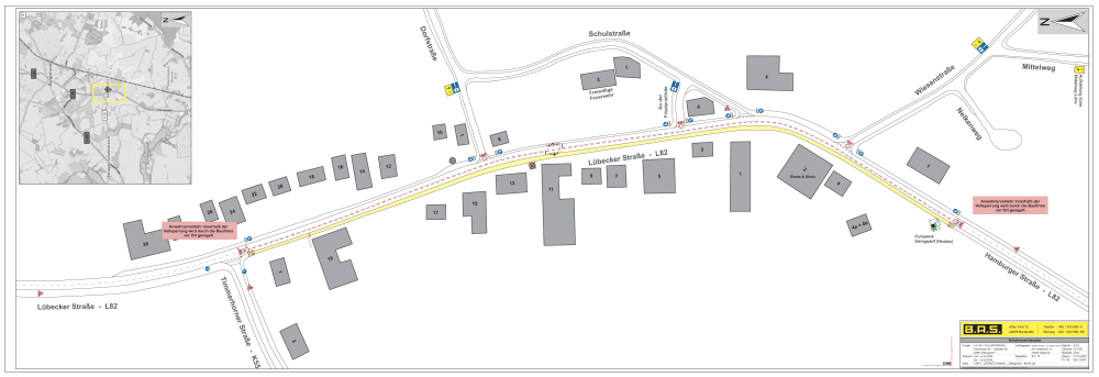 Es wird zum Begegnungsverkehr auf der L82 kommen, deshalb bitte mit Vorsicht und Schrittgeschwindigkeit innerhalb der Baustelle fahren.