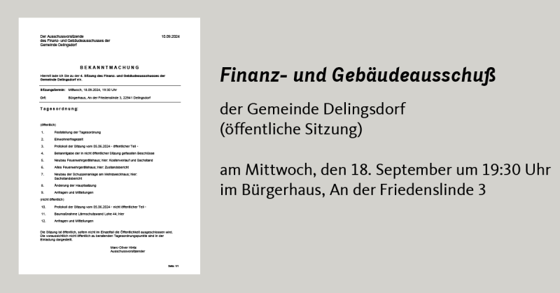 Ort: Bürgerhaus, An der Friedenslinde 3, 22941 Delingsdorf